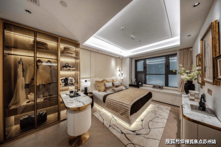 是设置装备摆设一个L型的步入式衣帽间再加一张